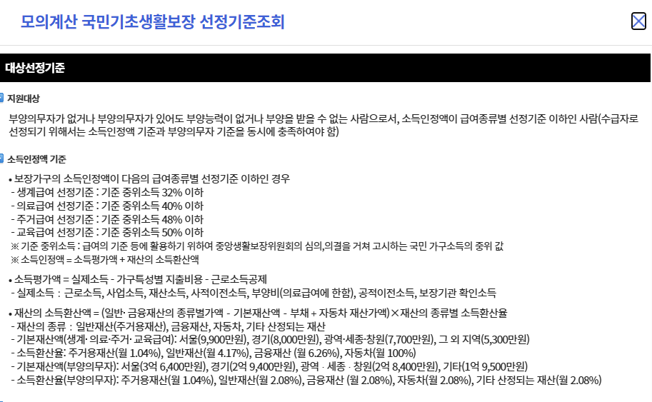 단순히 재산이 많고 적음을 보는 것이 아니라, 재산을 소득으로 환산한 ‘소득인정액’이 당락을 좌우합니다.