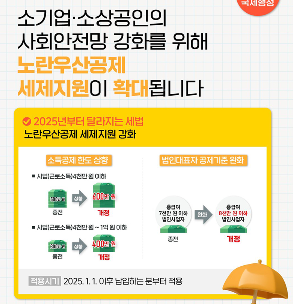 노랑우산공제가 무엇인지 2026년 기준 최신 정리. 소기업·소상공인을 위한 절세 제도부터 소득구간별 600만 원 소득공제, 연 1,800만 원 납입 한도, 중도해지 완화까지 한 번에 정리했습니다.