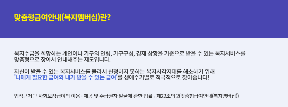 복지멤버십은 개인이 일일이 복지 혜택을 찾고 신청해야 하는 번거로움을 줄이고, 본인에게 맞는 복지 서비스를 자동으로 추천해 주는 맞춤형 서비스다. 과거에는 기초생활수급자, 차상위계층 등 특정 계층만 대상이 되는 경우가 많았지만, 최근에는 아동수당, 청년 지원, 노인 돌봄 서비스 등 국민 누구나 조건에 따라 활용할 수 있는 범위가 크게 넓어졌다. 쉽게 말해, 복지멤버십은 내게 맞는 혜택을 놓치지 않도록 연결해 주는 개인별 복지 큐레이션 서비스라고 할 수 있다.
