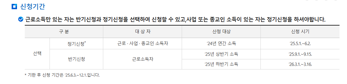 - 상반기 소득 기준 신청: 2025년 9월 1일 ~ 9월 15일