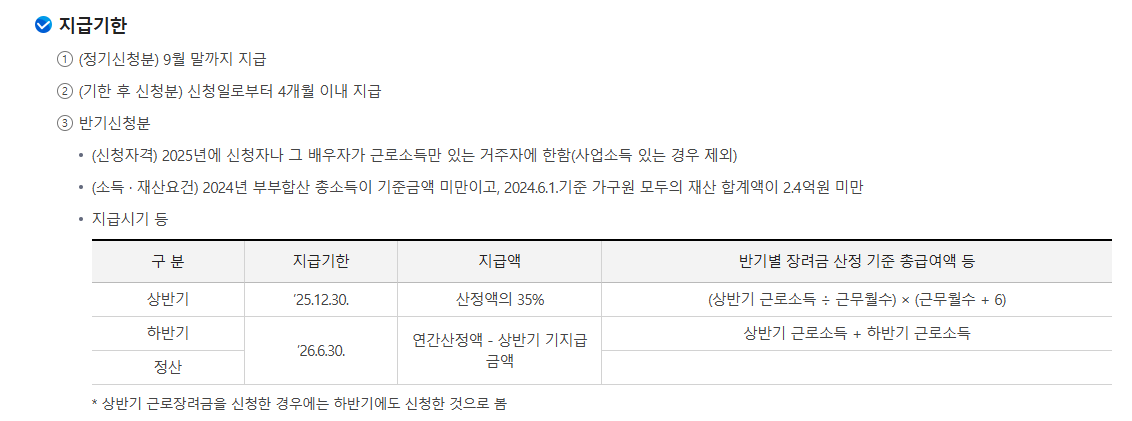 반기신청은 근로소득만 있는 사람에게 허용되는 제도다. 소득이 발생한 시점과 가깝게 지원금을 일부 지급해 생활 안정성을 높인다.