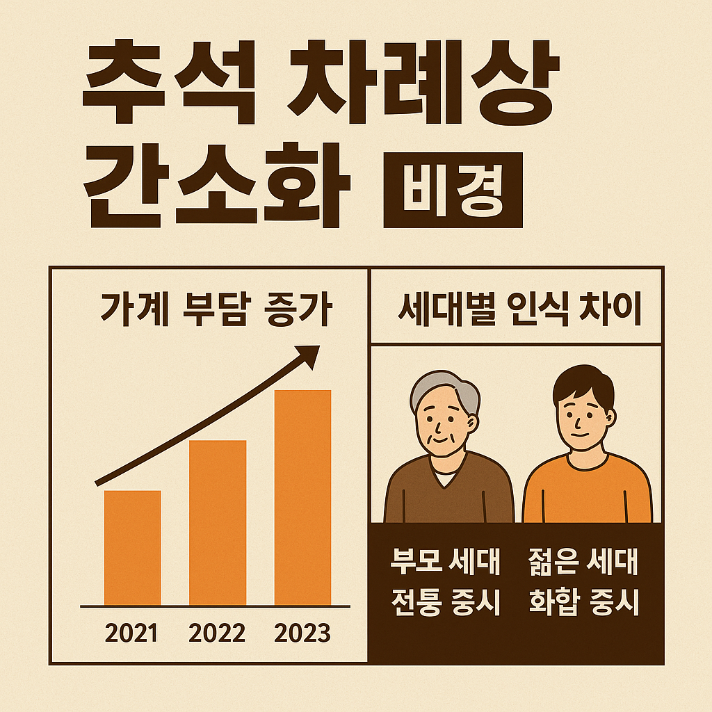 - 세대별 인식 차이: 부모 세대는 전통을 중시하지만, 젊은 세대는 가족의 만남과 화합을 더 중시