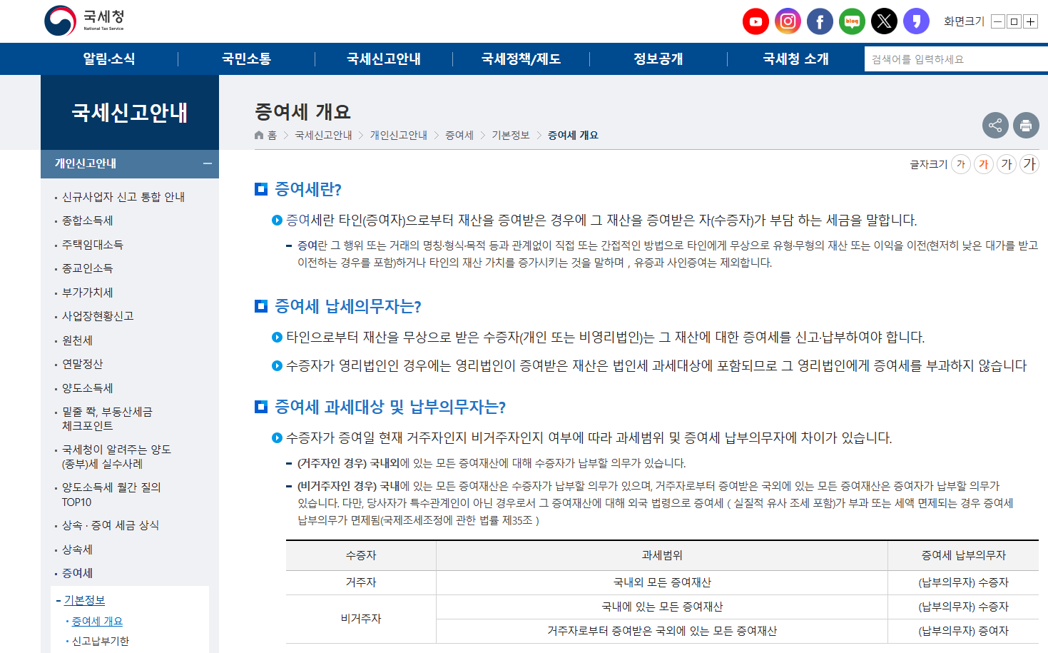 또한 증여세는 거주 여부에 따라 과세 범위가 달라집니다.