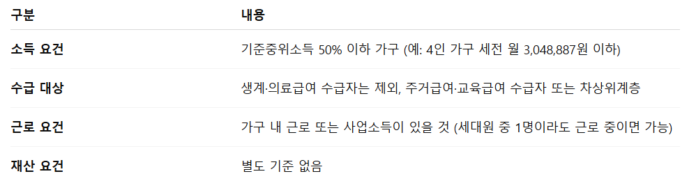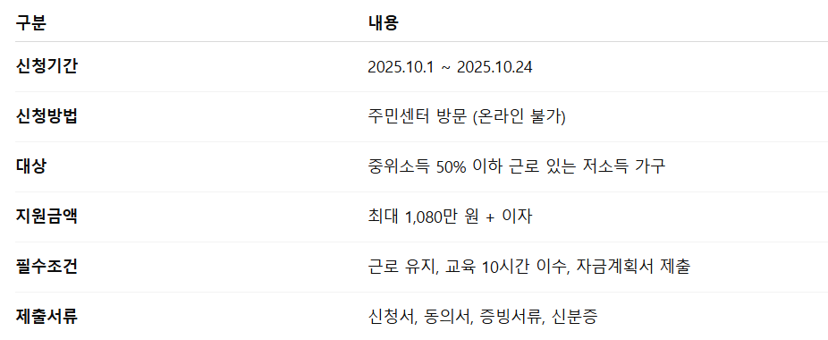 - 목적: 저소득 근로 가구의 자립·자산 형성 지원