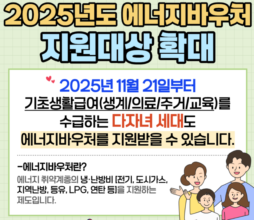 난방비 지원제도 중 가장 대표적인 것이 에너지바우처입니다. 에너지바우처는 생계급여 또는 의료급여 수급자 중 가구 내 노인·영유아·장애인·임산부 등 취약대상자가 포함되어 있을 때 지급됩니다. 이 제도는 단순해 보이지만 실제로는 다음 네 가지 기준이 모두 충족돼야만 대상에 포함될 수 있습니다.