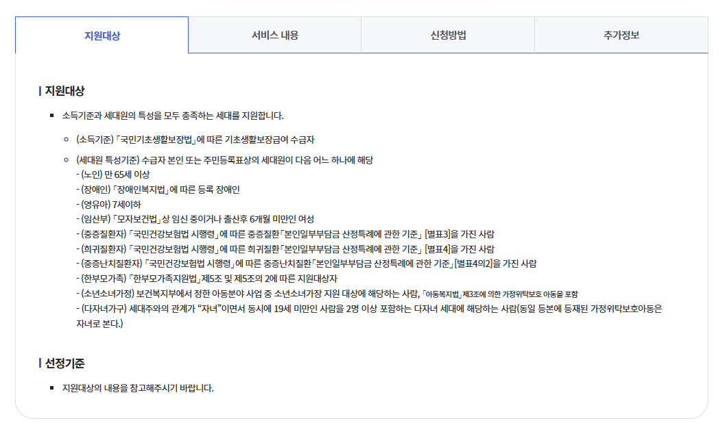 둘째, 가구 내 취약구성원(노인·영유아·장애인·임산부) 포함 여부.