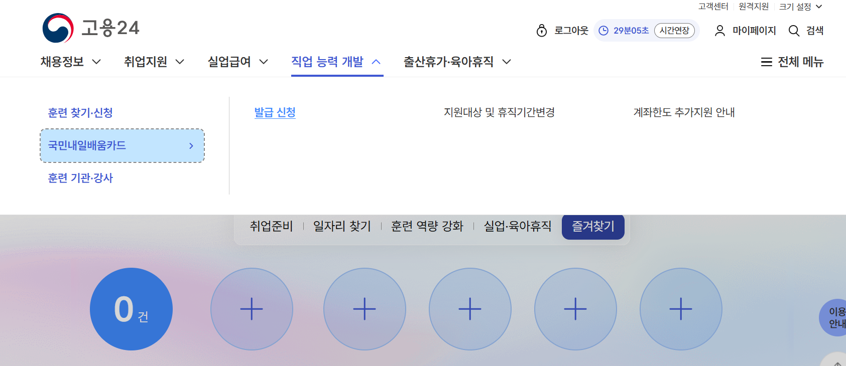 신청은 모바일에서 가장 빠르게 진행됩니다. 고용24 로그인 후 ‘국민내일배움카드 발급 신청’을 선택하면 즉시 절차가 시작됩니다.