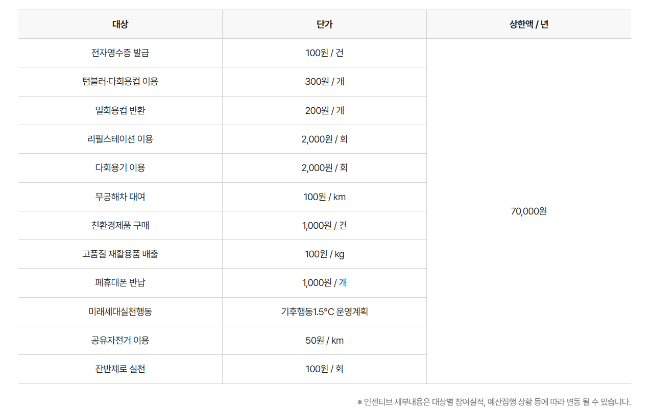 이 제도는 단순 참여 캠페인이 아니라, 정책 예산이 투입되는 공식 인센티브 사업입니다. 따라서 참여 실적은 정량적으로 관리되며, 지급 기준과 한도도 명확히 설정되어 있습니다.