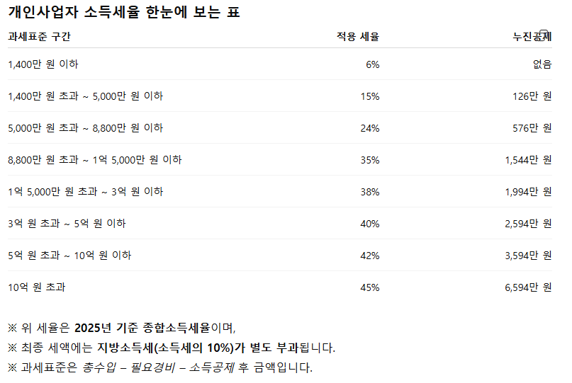 이 때문에 개인사업자 소득세율은 ‘구간별 누진 구조’로 이해하는 것이 핵심입니다.