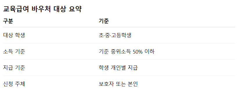 교육급여 바우처 신청자격 (2026년 기준)
