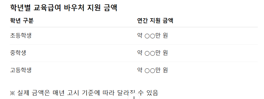 교육급여 바우처 지원금액과 지급 방식