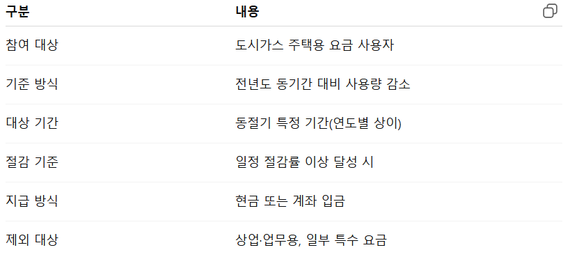 이 제도의 핵심은 전년 대비 사용량 감소입니다. 기준 기간 동안 사용한 도시가스 사용량이 과거 동일 기간보다 줄어들면, 절감 비율에 따라 캐시백이 산정됩니다.